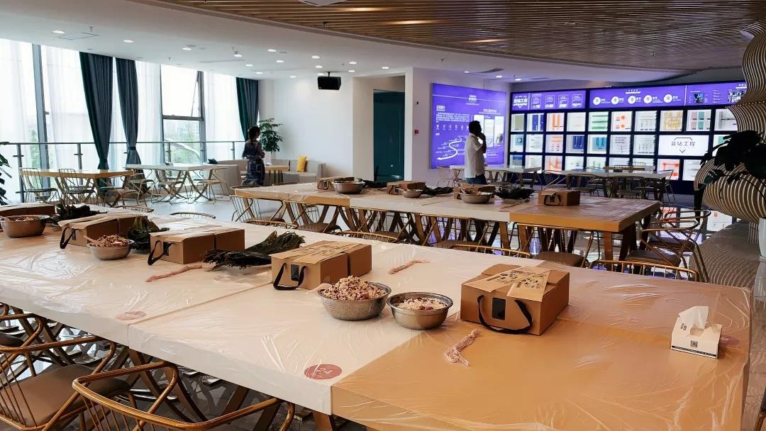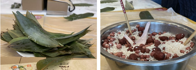 端午前一天,工作人员就准备好了所有需要的材料:糯米、红枣、红豆、腊肉、花生等等。