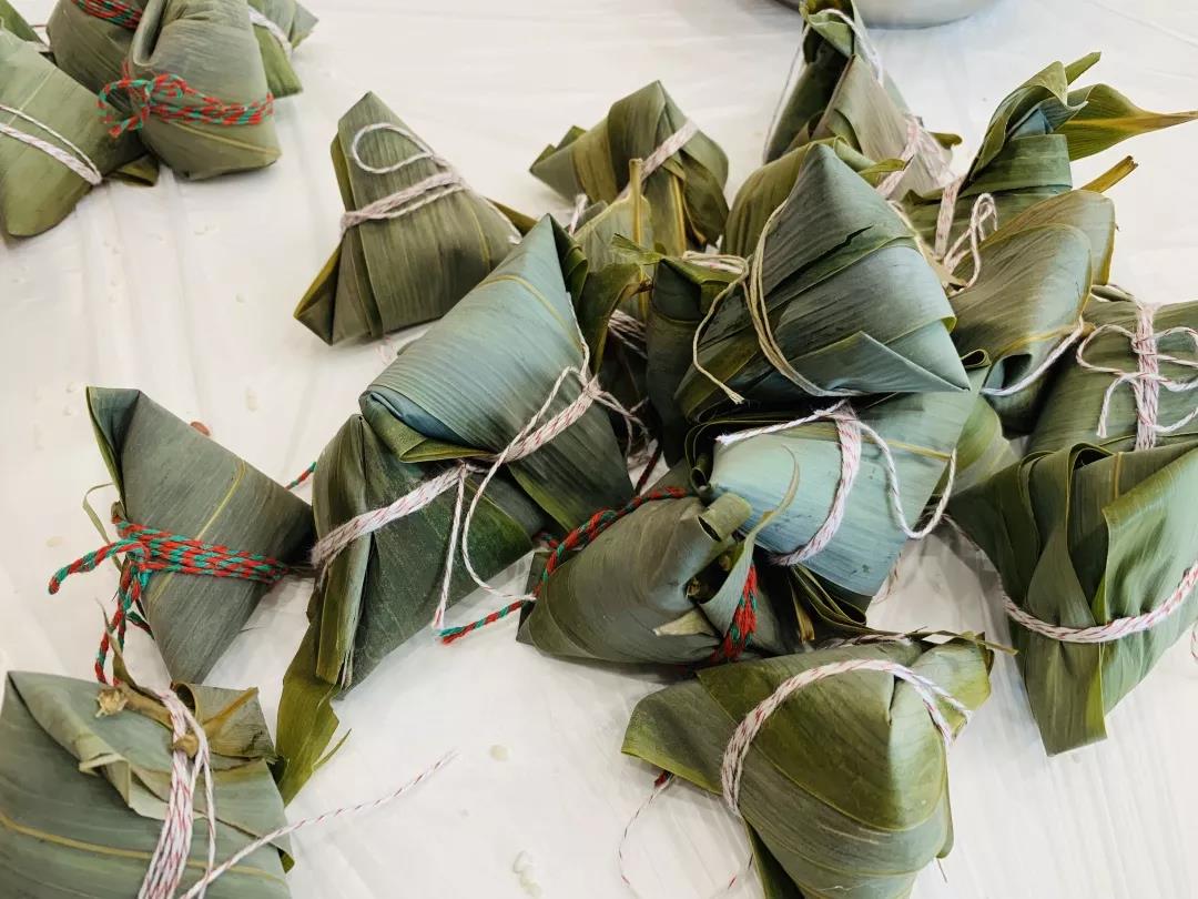 不管怎么样,大家包粽子的过程中都很开心,不太会的会互相帮助,要是中途失败了,笑笑又继续尝试。很快的,一个个成品就出来啦~