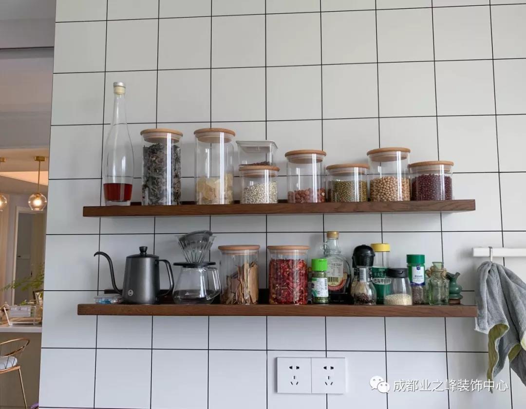 热爱生活的人从小小细节就能看出来,厨房干净的就像从未在厨房做饭过,但墙上摆放整齐的各种调料又彰显出羊姐是一个很享受自己动手做美食的人。