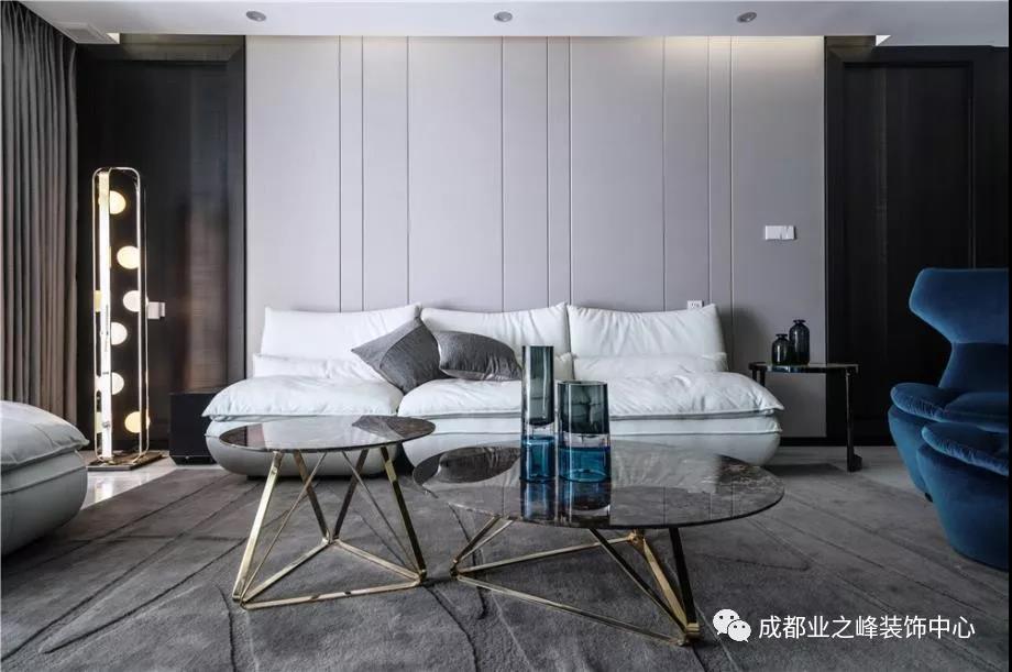 我们一般打开家门,第一眼都会先注意到客厅。以黑、白、灰为基础色调的客厅非常简约,却也有一些很现代风的装饰如:深蓝色躺椅、立灯,包括很前卫的茶几设计,都给客厅增添了很多时尚元素。使客厅能体现主人的地位,品位,也适用于进行交友娱乐活动。