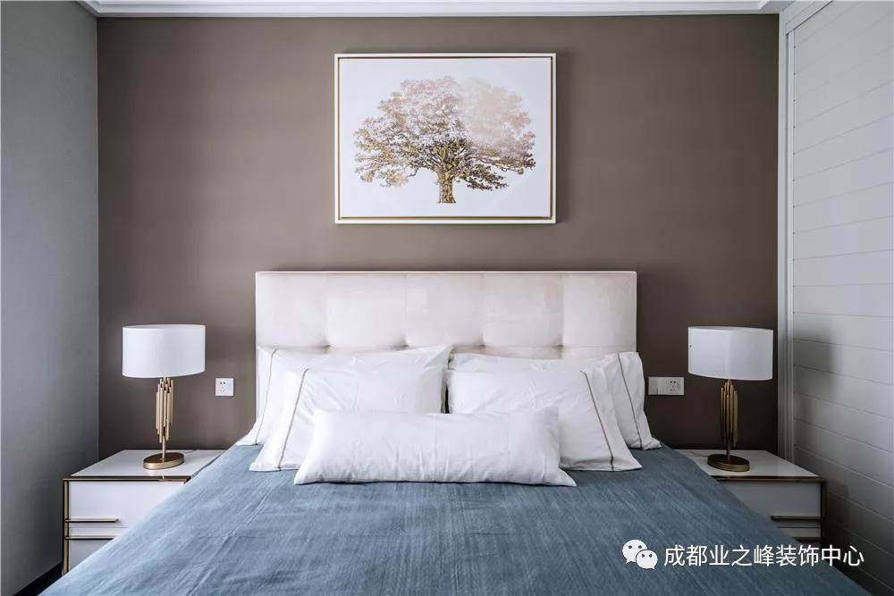 卧室的风格与之前大不相同,既明亮又温柔。白色为基本色调的设计风格本就是现代简约风格比较推崇的类型,室内所有装饰包括床、台灯、装饰画等等,都是对比度没那么强烈的淡雅色系。劳累的工作后更需要足够的休息,这样的卧室设计即使刚刚熬了夜、压力冲头也可以放下烦恼去养足精神。