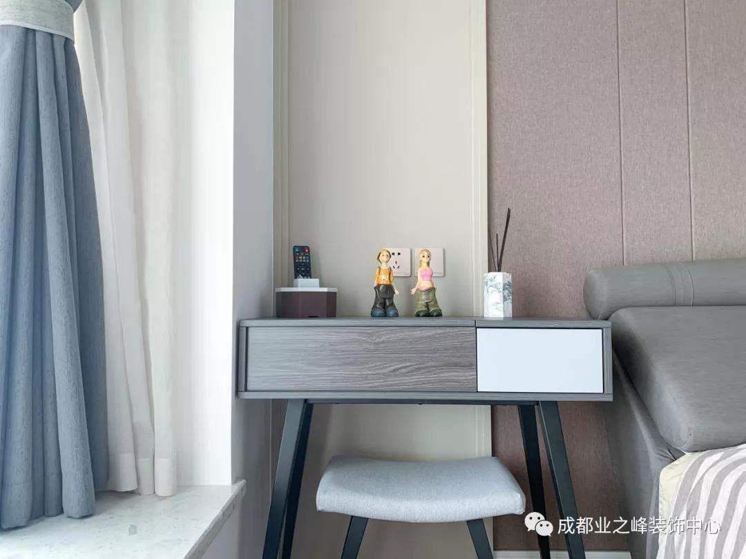 夫妻俩的童心未泯在这个床头柜上也能得以体现,这两个可爱的卡通公仔,让本来还有些沉稳之风的房间一下变得有活力可爱起来;人生就应该这样,不怕变老,保持一颗年轻、乐观的心态。