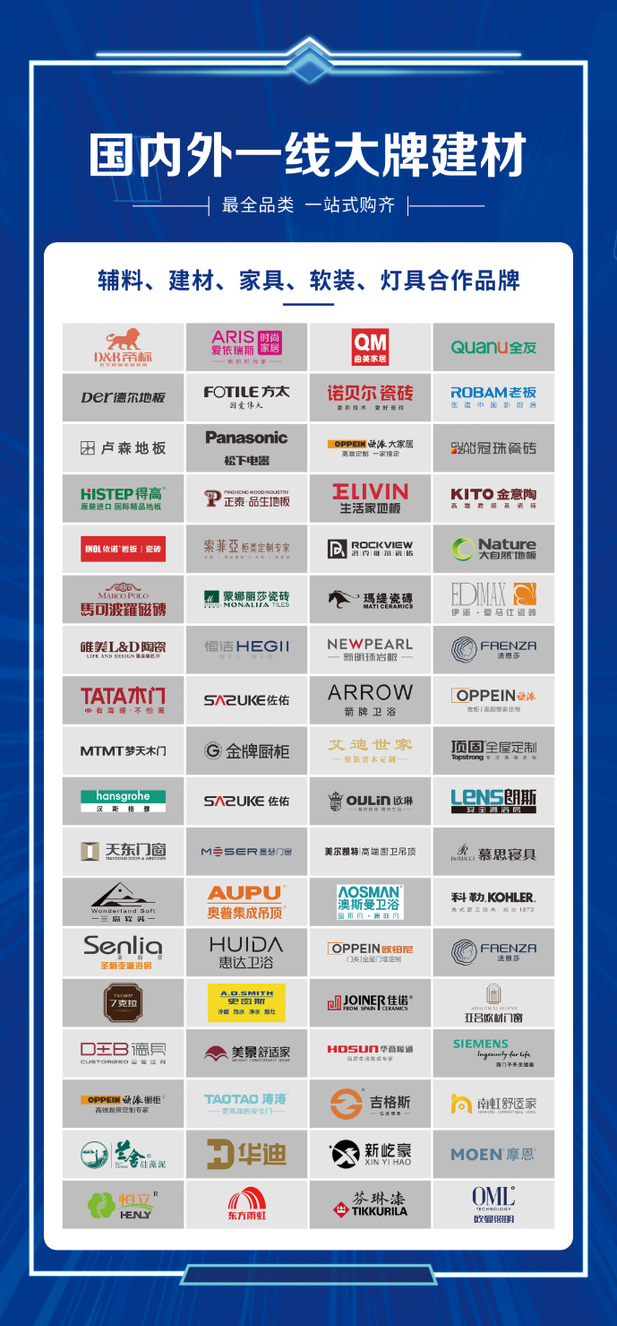 现阶段,有多家供应商与业之峰达成合作,提供国内外一线大牌建材。TOTO、法恩莎、箭牌等卫浴品牌,索菲亚、德贝、欧派等标杆性橱柜企业,方太、美的、老板等品牌......众多一线大牌,共同构成业之峰强有力的产品供应链,能够完全满足不同客户对于家的多元化需求。