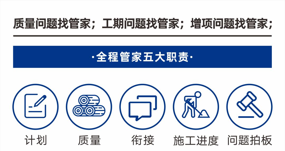 业之峰首推的“全程管家”,装修全过程为业主1V1服务。从预交底到完工交付,全程为客户把关,无论是施工计划指定、过程衔接沟通还是问题处理及竣工收尾事宜,客户的任何问题都可以在一开始得到妥善处理,而不是拖到最后,小事变大事,并且找不到人解决。